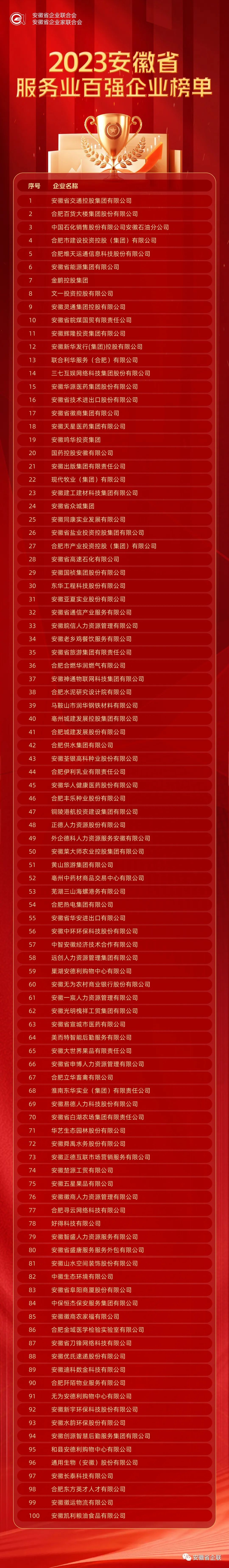 附件:2023安徽省百強企業(yè)、制造業(yè)、服務業(yè)百強企業(yè)名單