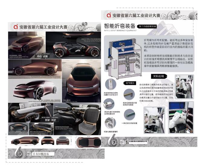 最終,來自奇瑞汽車的E-IUV概念車(概念設(shè)計(jì))與安徽聯(lián)盟模具工業(yè)有限公司的基于無線射頻識(shí)別的智能折彎裝備( 實(shí)物產(chǎn)品)榮獲本次大賽金獎(jiǎng),從設(shè)計(jì)理念、產(chǎn)品外形、先進(jìn)技術(shù)在產(chǎn)品中的應(yīng)用以及解決行業(yè)痛點(diǎn)等關(guān)鍵問題上,以上作品在行業(yè)中均處于領(lǐng)先水平。同時(shí),來自順榮股份、三只松鼠、美的冰箱、中車龐巴迪(蕪湖)、安徽工程大學(xué)、安徽工業(yè)大學(xué)等企業(yè)、高校投稿作品也在本次大賽中取得了優(yōu)異的成績。