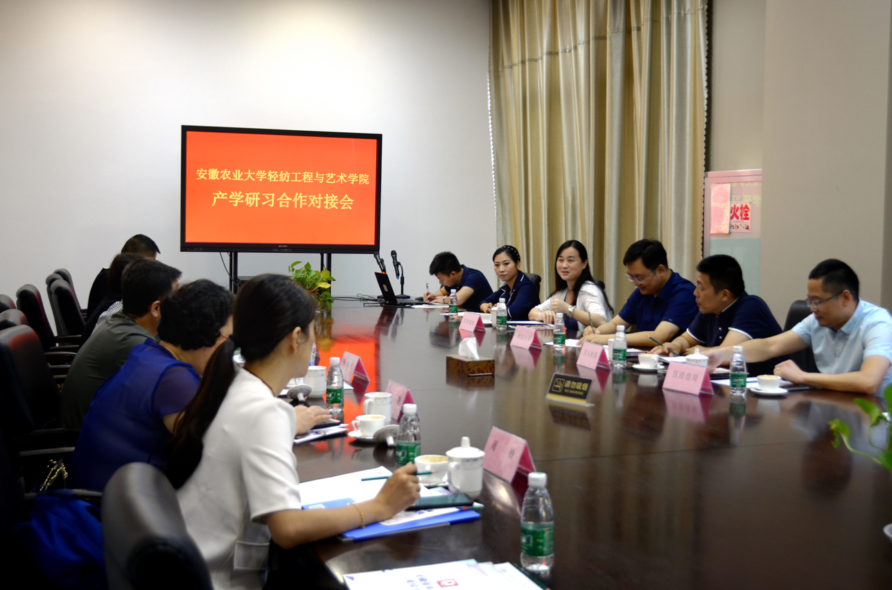 為進一步加強校企合作,加大成果轉(zhuǎn)化力度并促進學(xué)生就業(yè)創(chuàng)業(yè),7月21日上午,安徽農(nóng)業(yè)大學(xué)輕紡工程與藝術(shù)學(xué)院黨委書記王冬平、院長杜兆芳、院黨委副書記呂劍秋、副院長陸小彪、紡織系主任劉陶、院辦主任周玲來園開展產(chǎn)學(xué)研習對接會,區(qū)人社局局長陳鈞、科技局局長張勝娟、經(jīng)信局局長龍士海、礱坊科技副總經(jīng)理卞國琛、部分工作人員及園區(qū)企業(yè)代表參加會議。