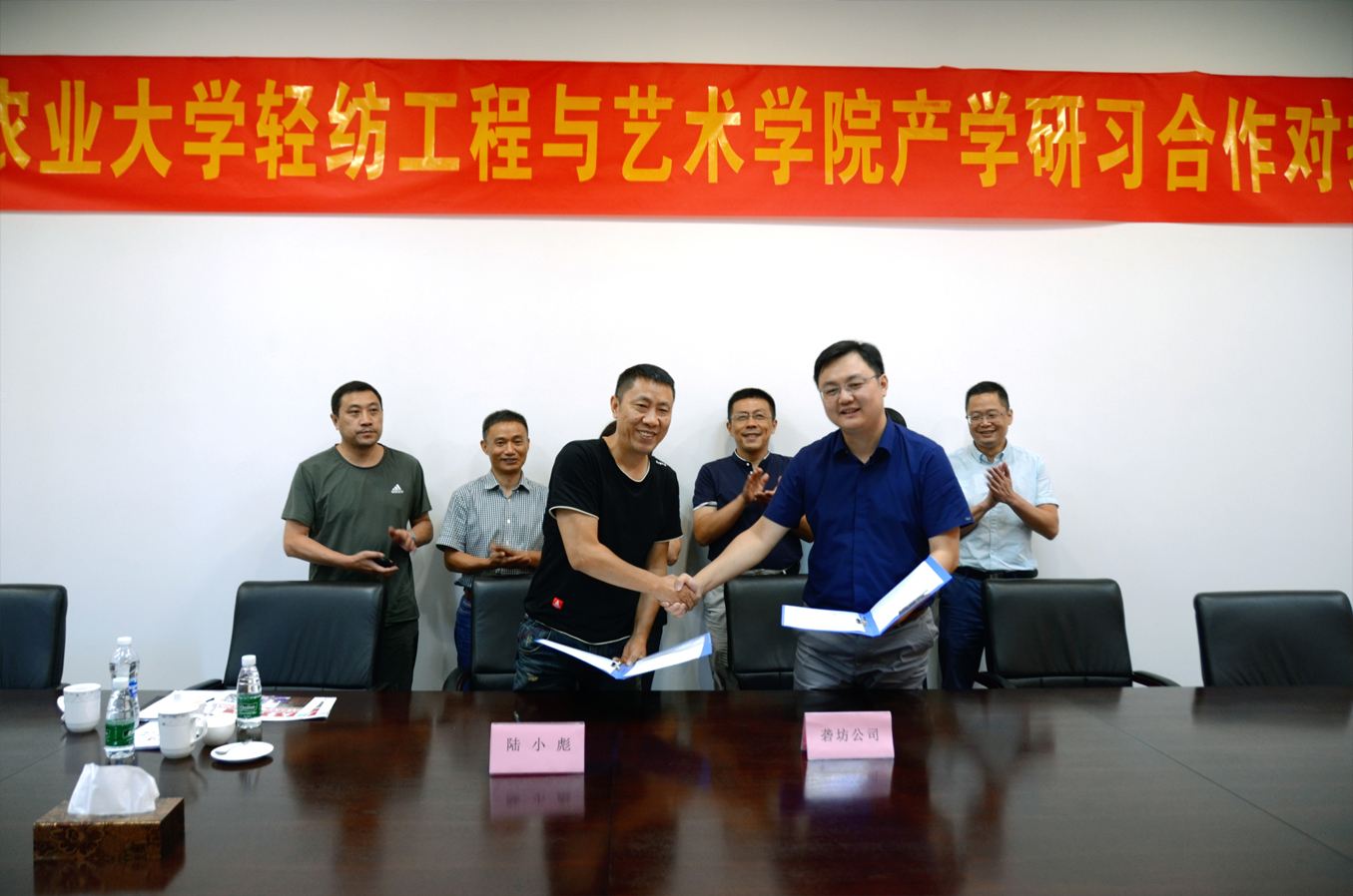 最后,在與會人員的共同見證下,陸院長、杜院長與卞總對“安徽農(nóng)業(yè)大學(xué)輕紡工程與藝術(shù)學(xué)院校外實習基地”進行了簽約和揭牌,并實地參觀了MatchU碼尚、百年益新面粉大樓及大礱坊歷史文化長廊,本次產(chǎn)學(xué)研習對接會議圓滿結(jié)束。