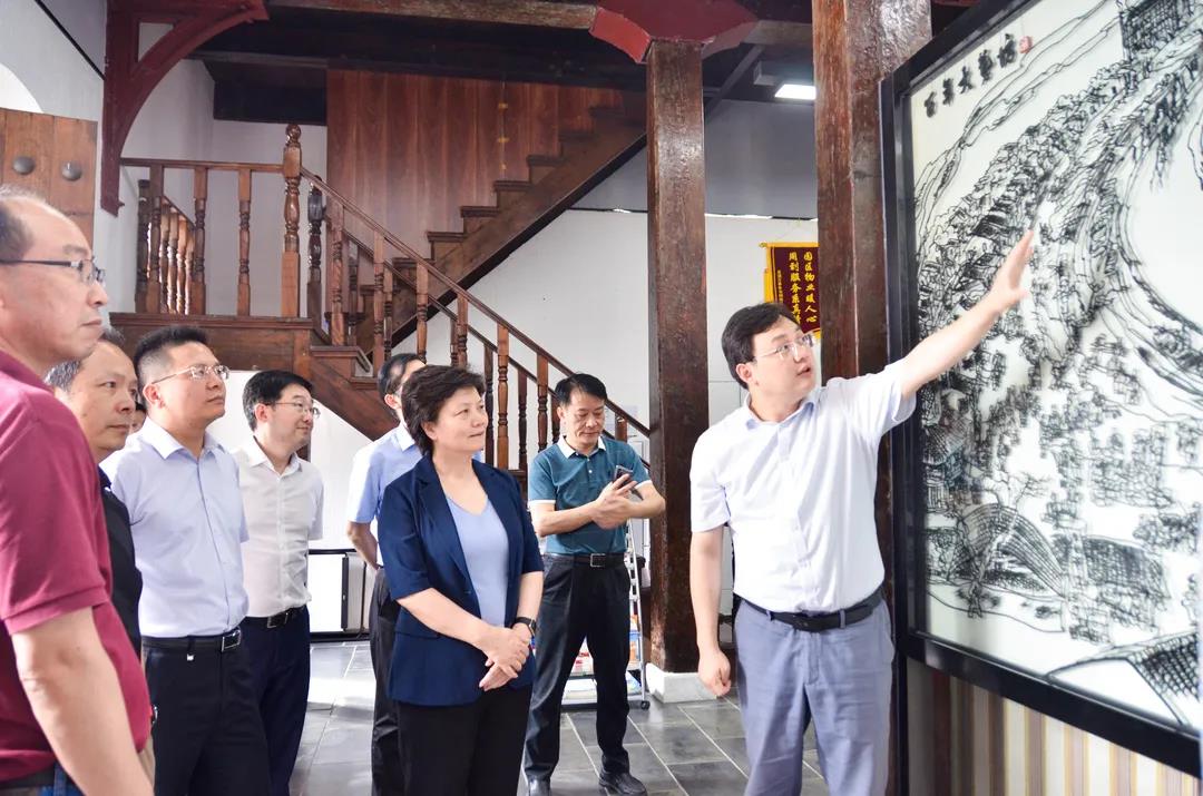? 調(diào)研組一行首先來到園區(qū)益新面粉大樓,園區(qū)功能性黨委書記、總經(jīng)理卞國琛在鐵畫作品《百年大礱坊》前向調(diào)研組介紹百年前蕪湖青弋江兩岸繁榮興盛的景象,講解益新面粉廠131年的風雨歷程,以及大樓如何整修與保護。調(diào)研組在大樓四樓駐足觀賞原華中師范大學校長章開沅老先生的題詞,上面寫道:“飲水思源,日新又新”“百年益新面粉廠,日新礱坊科技園”。
